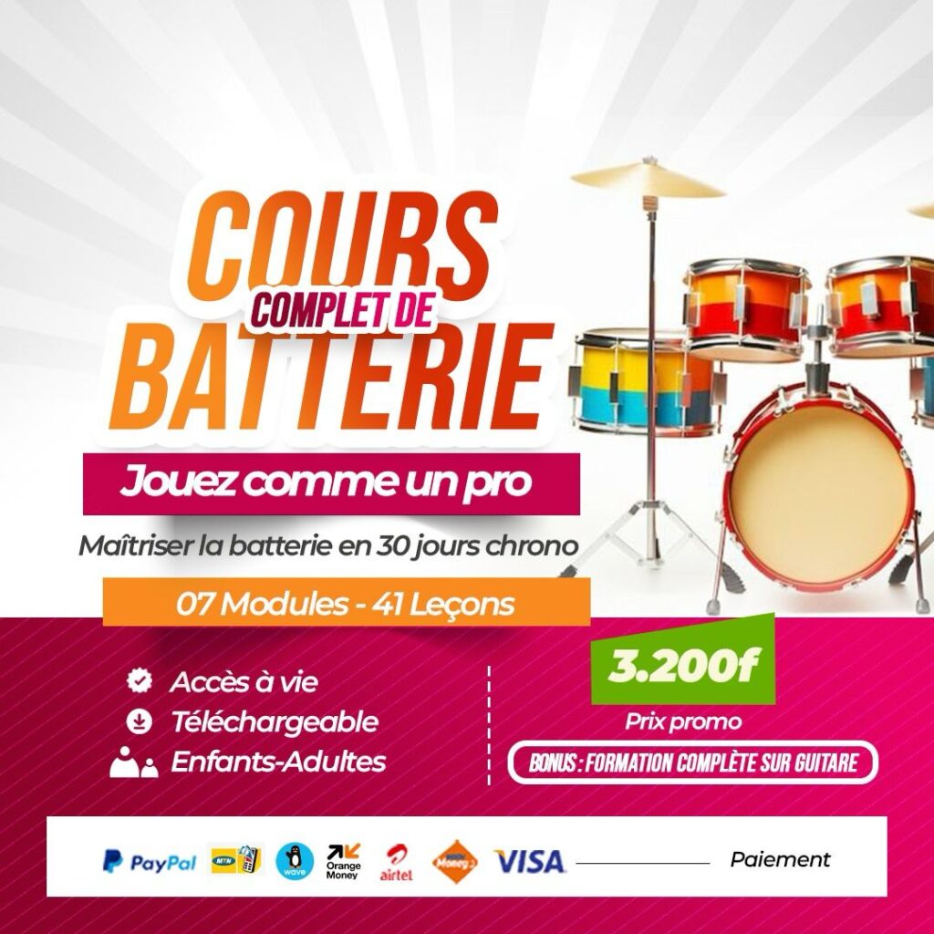 Apprenez à jouer de la batterie facilement avec notre formation complète ! Que vous soyez débutant ou que vous souhaitiez perfectionner votre technique, ce cours vous guide pas à pas.